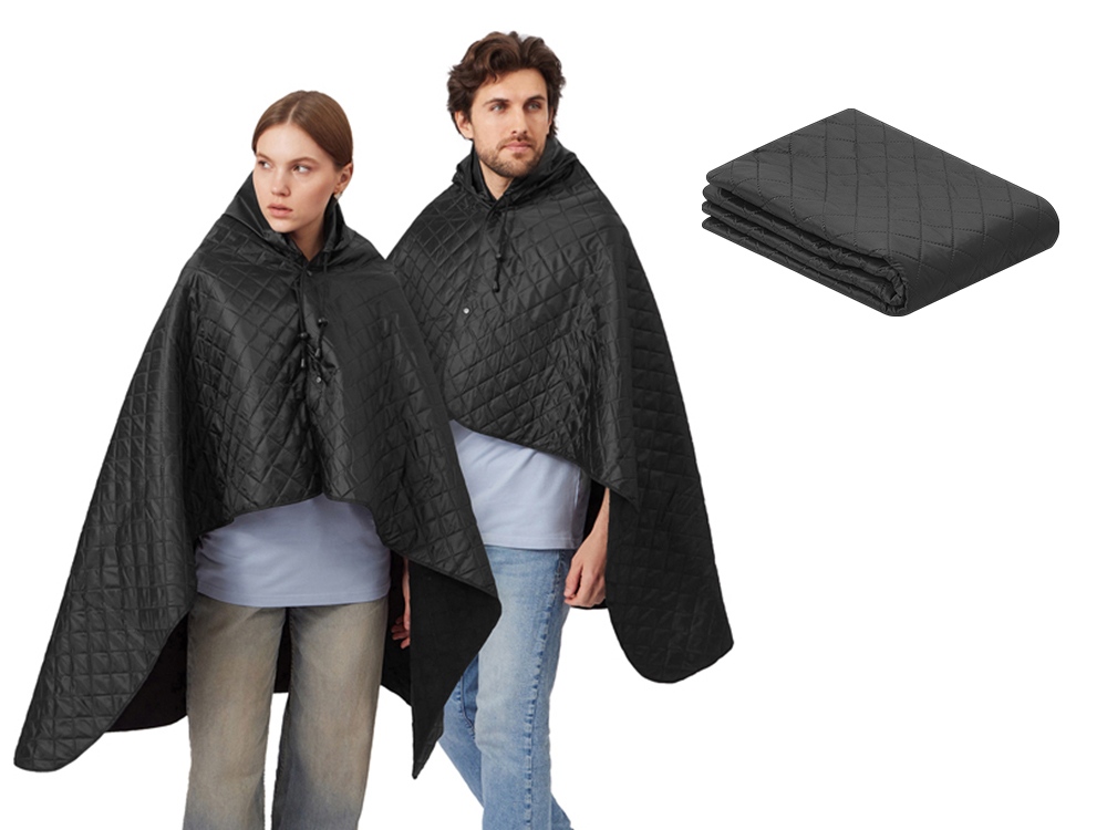 На внутренней стороне из флиса приятно и тепло сидеть, а наружная сторона из полиэстера с водоотталкивающим покрытием не позволяет пледу намокнуть или сильно испачкаться. Для больше удобства использования пледа во время дождя в комплекте идет капюшон, который фиксируется с помощью липучки. Накинув плед на плечи, застегните его на кнопки вверху и наденьте капюшон. Вы не промокните во время неожиданного дождя!