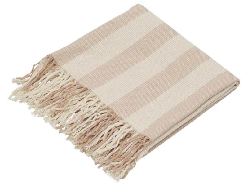Хлопковый натуральный плед в модную полоску можно использовать как одеяло или как покрывало для украшения интерьера. Бахрома по бокам добавит комфорта и стиля. Немаркие цвета и легкий уход создают дополнительный комфорт при использовании.