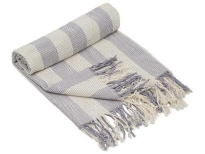 Хлопковый натуральный плед в модную полоску можно использовать как одеяло или как покрывало для украшения интерьера. Бахрома по бокам добавит комфорта и стиля. Немаркие цвета и легкий уход создают дополнительный комфорт при использовании.