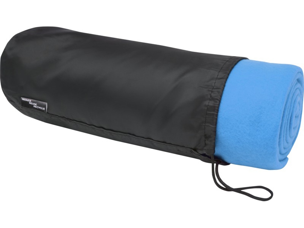 Плед из флиса, вторичного ПЭТ, подходит для использования в помещении и на улице. 100% переработанный полиэстер, 180 g/m2. Поставляется с сумкой для переноски из вторичного ПЭТ 190T с застежкой на шнурке. Размер сумки d13 х 34 см. Упаковано в полиэтиленовый пакет из переработанного материала.