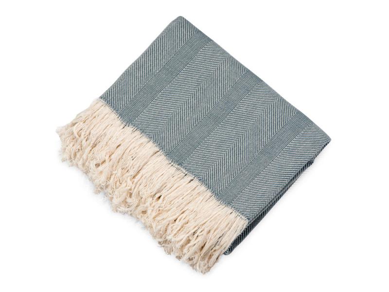 Плотный плед из натурального хлопка с бахромой по бокам можно использовать как одеяло или как покрывало для украшения интерьера.