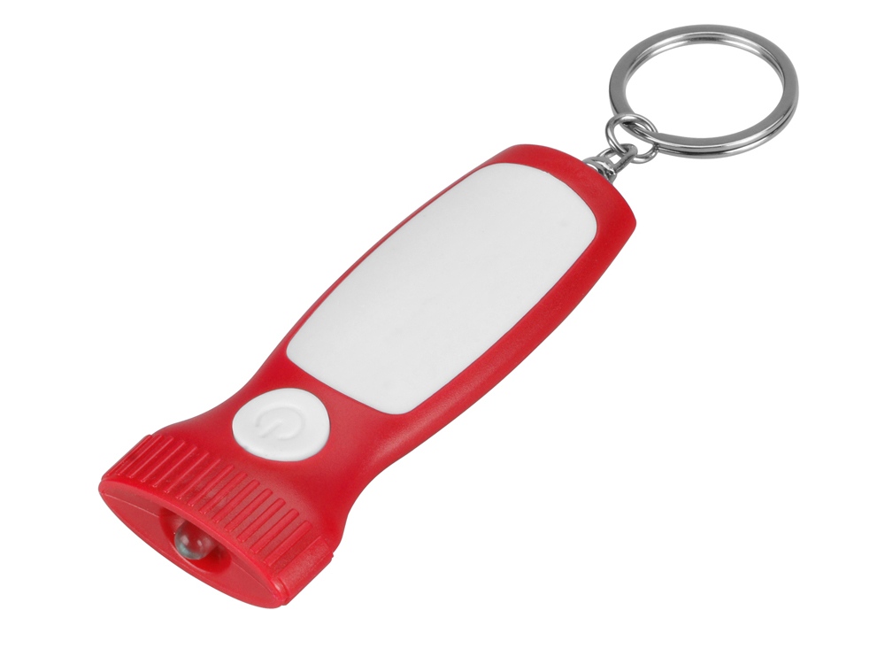 Яркий брелок со встроенным фонариком. Плоская форма и большая ручка с белой вставкой делает брелок удобным для нанесения логотипа.