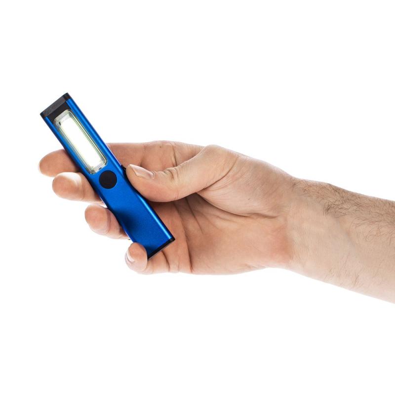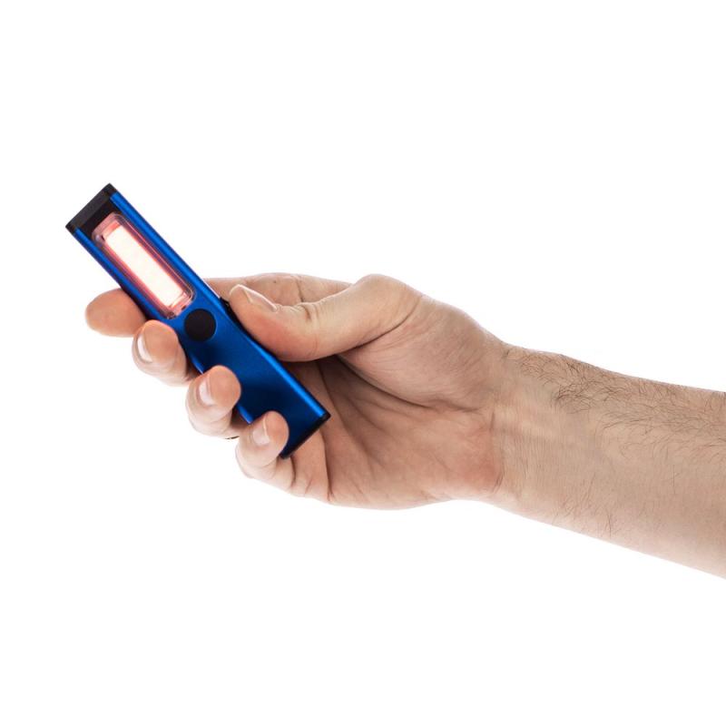 Плавная регулировка яркости осуществляется удержанием центральной кнопки при включенном устройстве — это позволяет точно адаптировать освещение под рабочие условия. Магнит в основании фонарика дает возможность зафиксировать фонарик на металлической поверхности и освободить руки для выполнения задач.