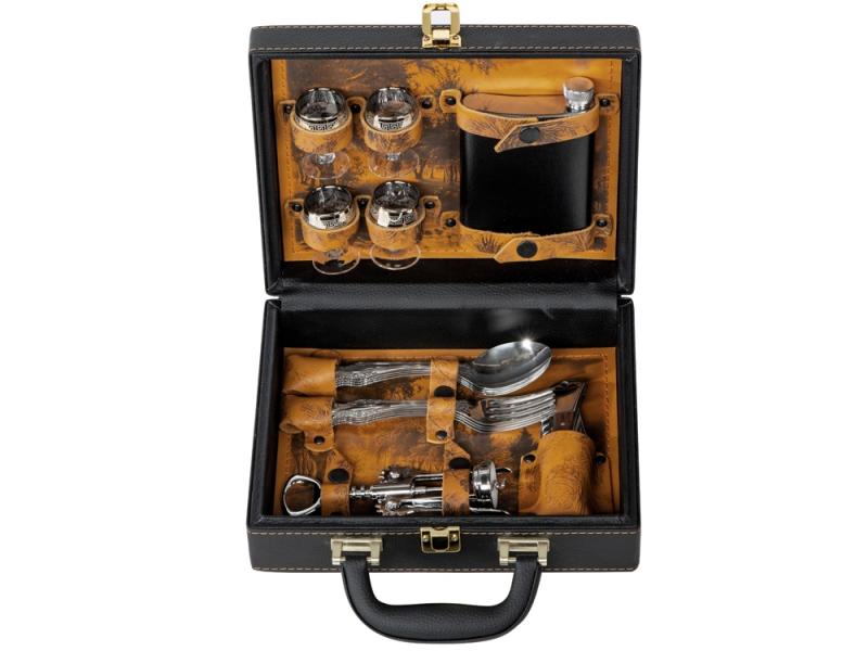 стопки- прозрачный/золотистый, шампура- серебристый/коричневый, дипломат- темно-коричневый