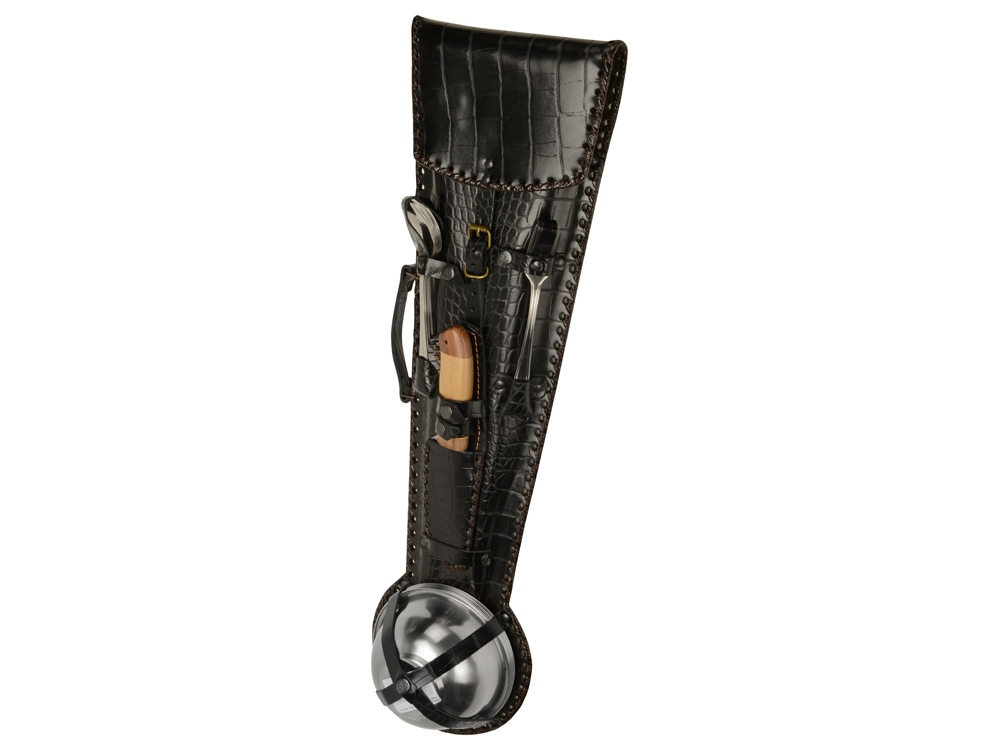 Набор для пикника в кожаном чехле ручной работы.