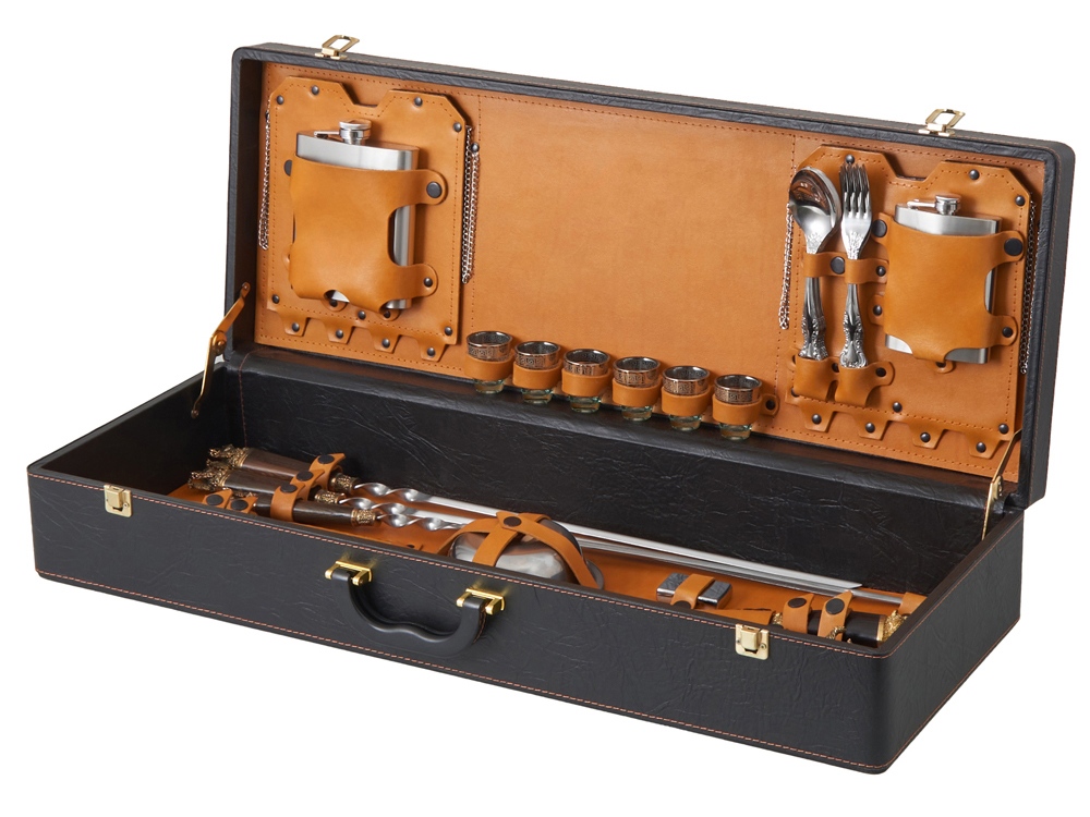 Кейс из сплит-кожи, с повышенной износостойкостью, внутренняя отделка натуральная кожа с художественным выжиганием.
