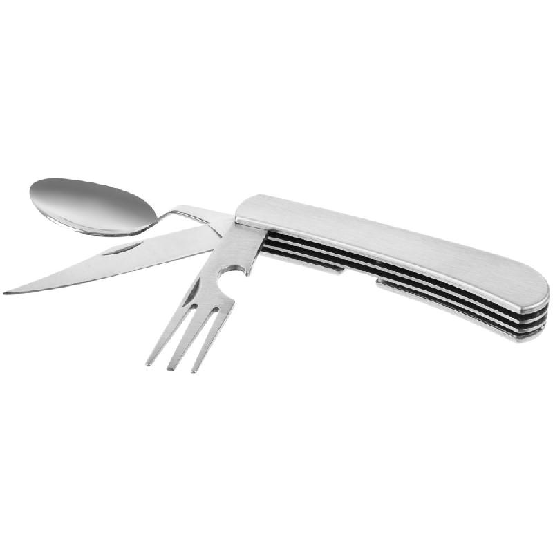 Набор состоит из 4 приборов: ложки, вилки, открывашки и ножа.