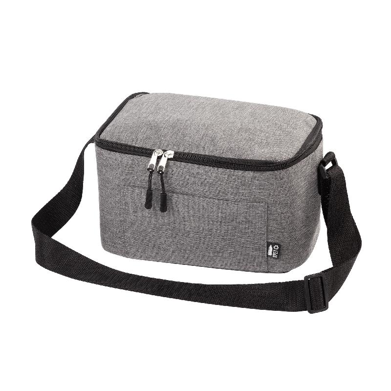 Сумка-холодильник изготовлена из прочной ткани, полученной из переработанного пластика (RPET) с меланжевым эффектом.