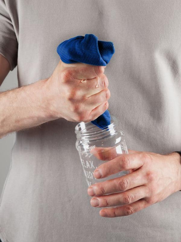 Для получения охлаждающего эффекта намочите полотенце, отожмите излишки воды и встряхните. Положите полотенце на шею, лоб или запястье, убедившись, что ткань покрывает кожу. Влага, испаряясь из полотенца, оказывает охлаждающее воздействие на кожу, обеспечивая мгновенное облегчение.