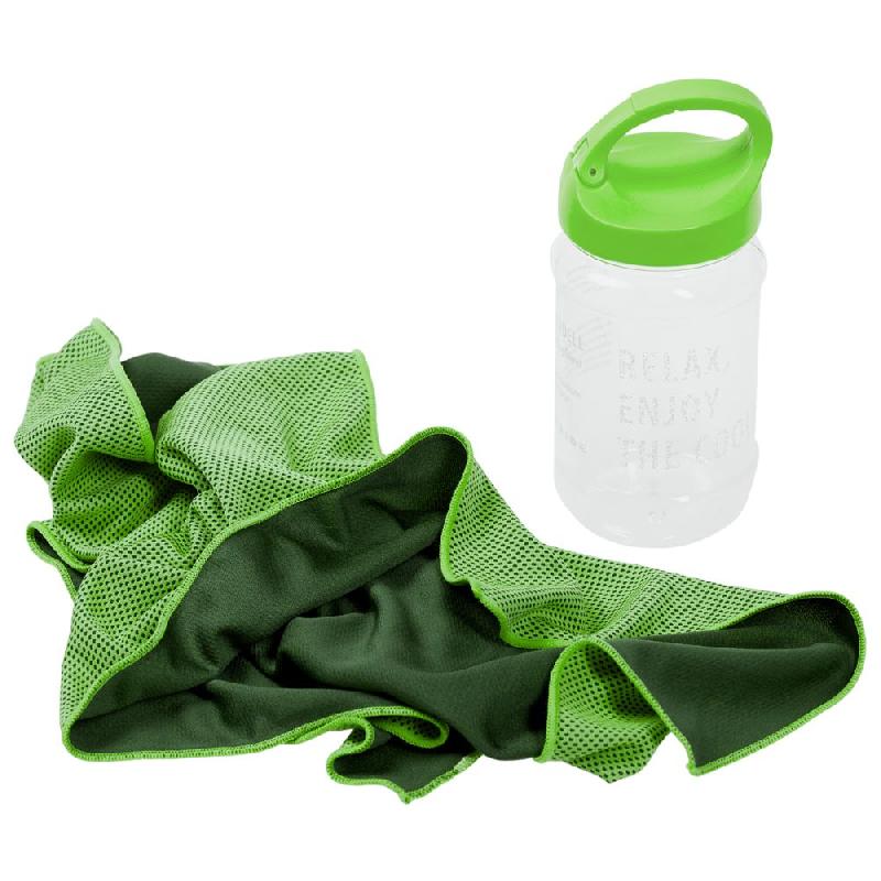 При хранении в бутылке полотенце сохранит охлаждающий эффект в течение нескольких часов. Благодаря крышке-карабину ее удобно прицепить на рюкзак или сумку.