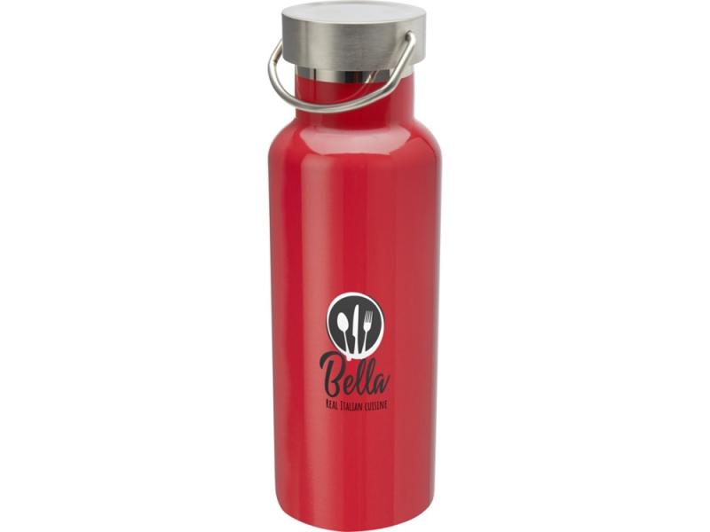 Прочная бутылка для воды из нержавеющей стали с двойными стенками, вакуумной изоляцией, сертифицированная RCS, с завинчивающейся крышкой из нержавеющей стали и прочной ручкой-петлей из нержавеющей стали. Объем: 500 мл. Герметичность. Уложена в подарочную коробку. RCS certified recycled stainless steel.