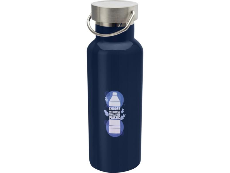 Прочная бутылка для воды из нержавеющей стали с двойными стенками, вакуумной изоляцией, сертифицированная RCS, с завинчивающейся крышкой из нержавеющей стали и прочной ручкой-петлей из нержавеющей стали. Объем: 500 мл. Герметичность. Уложена в подарочную коробку. RCS certified recycled stainless steel.