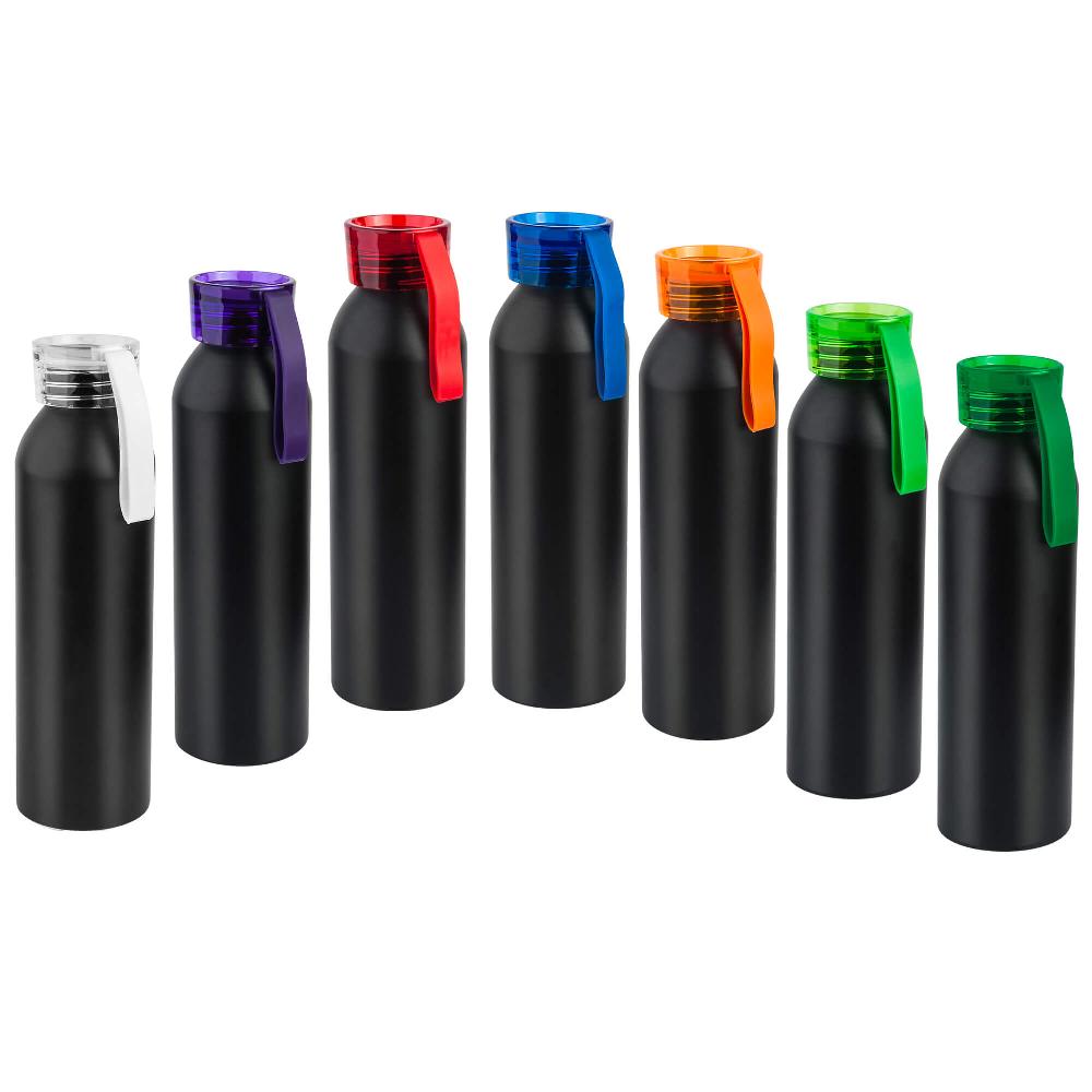 Алюминиевая матовая бутылка с пластиковой крышкой.