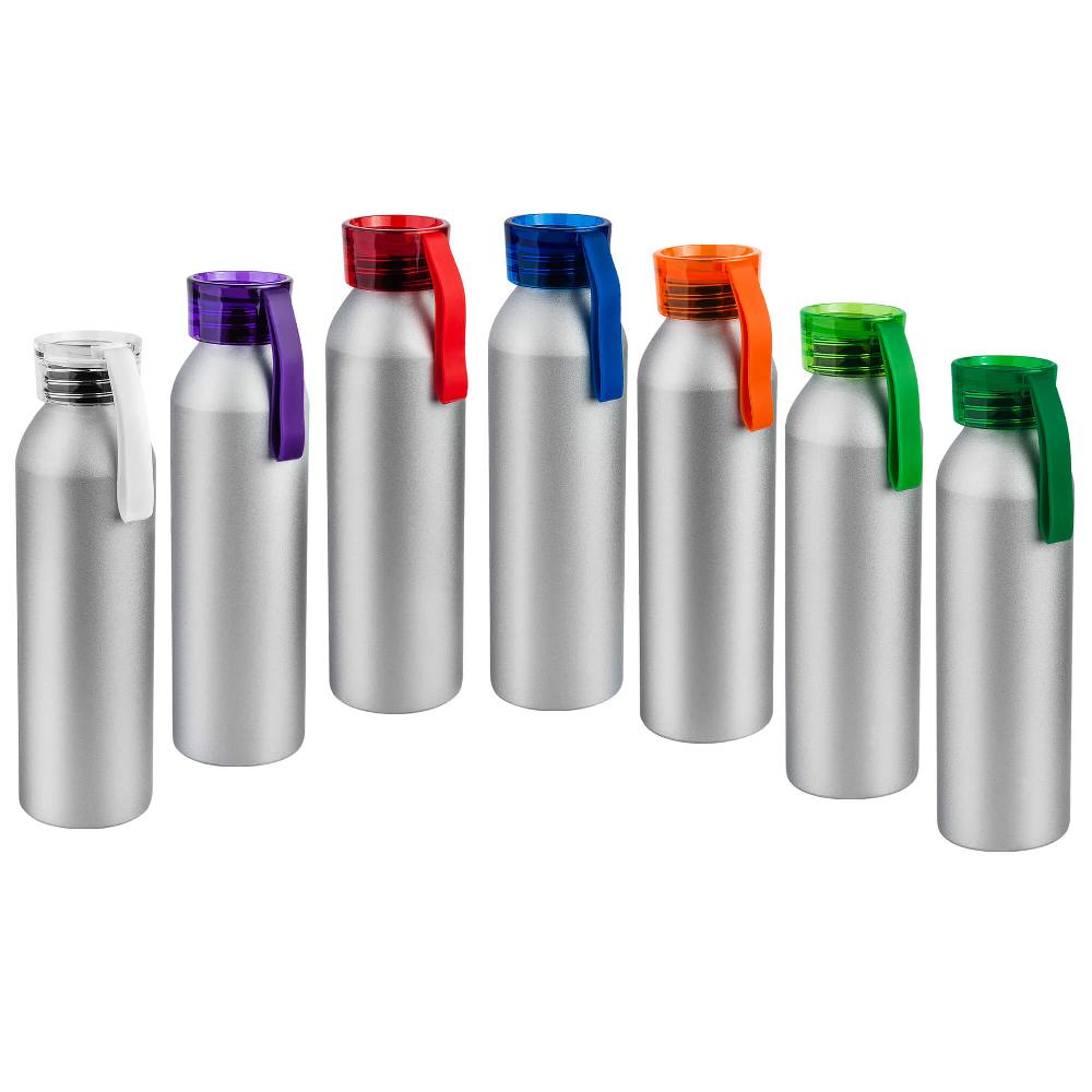 Алюминиевая матовая бутылка с пластиковой крышкой.