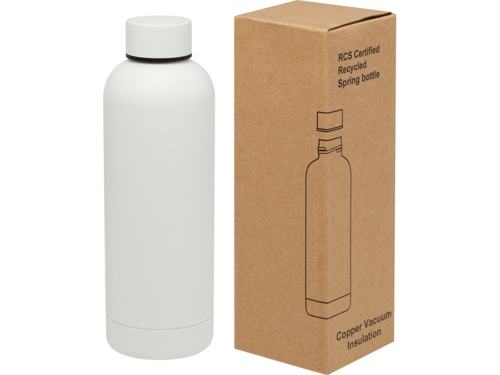 Бутылка из нержавеющей стали, сертифицированная RCS, с медной вакуумной изоляцией и лаконичным дизайном. Изолированная конструкция из нержавеющей стали предотвращает образование конденсата внутри бутылки, а модное матовое порошковое покрытие делает бутылку особенно прочной. Не содержит БФА, протестирована и одобрена в соответствии с немецким законодательством о безопасности пищевых продуктов (LFGB). Проверена на содержание фталатов и одобрена для использования в соответствии с правилами REACH. Объем 500 мл. Рекомендуется мыть вручную. Поставляется в подарочной коробке из переработанного картона. Recycled stainless steel.