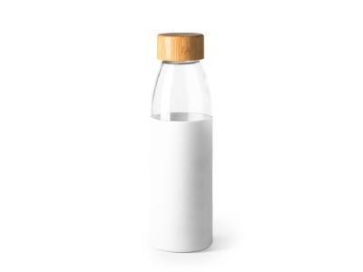 Стеклянная бутылка с бамбуковой пробкой и силиконовым чехлом пяти разных цветов. Объем 540 мл.