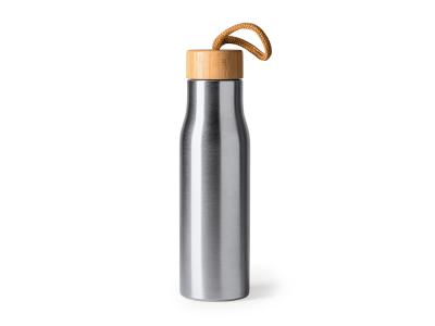 Бутылка из нержавеющей стали 304 с бамбуковой пробкой. В комплекте транспортировочный ремень. Объем 600 мл.