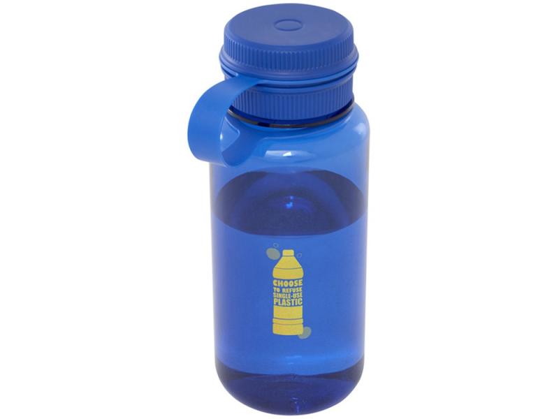 Одностенная спортивная бутылка, изготовленная из переработанного ПЭТ-пластика, сертифицированного RCS, с завинчивающимся верхом, герметичной крышкой и удобной ручкой для переноски, встроенной в крышку. Конструкция с двумя отверстиями для легкой очистки и наполнения. В соответствии с одобренным EFSA (Европейским агентством по безопасности пищевых продуктов) процессом переработки ПЭТ. Объем: 900 мл. Переработанный PET пластик.