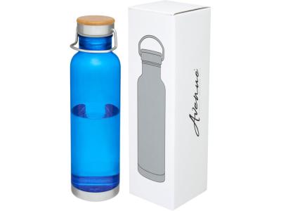 Спортивная бутылка с одинарными стенками из прочного материала от Tritan™. Устойчива к ударам, не пачкается и не пропускает запахи. Имеет съемную крышку с бамбуковым колпачком и ручку для удобной переноски. Без содержания БФА. Объем 800 мл. Представлена в подарочной коробке Avenue.