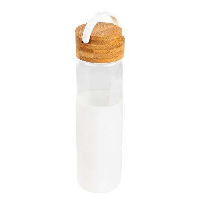 Бутылка стеклянная с силиконовой манжетой и бамбуковой крышкой Glass, белая