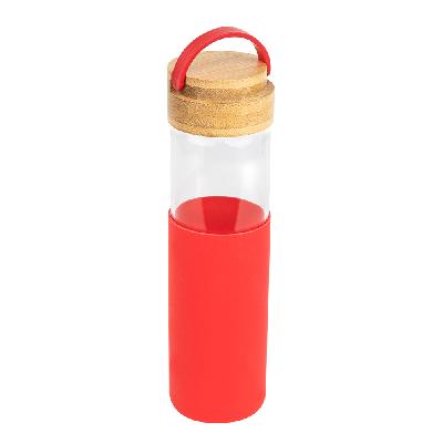 Бутылка стеклянная с силиконовой манжетой и бамбуковой крышкой Glass, красная