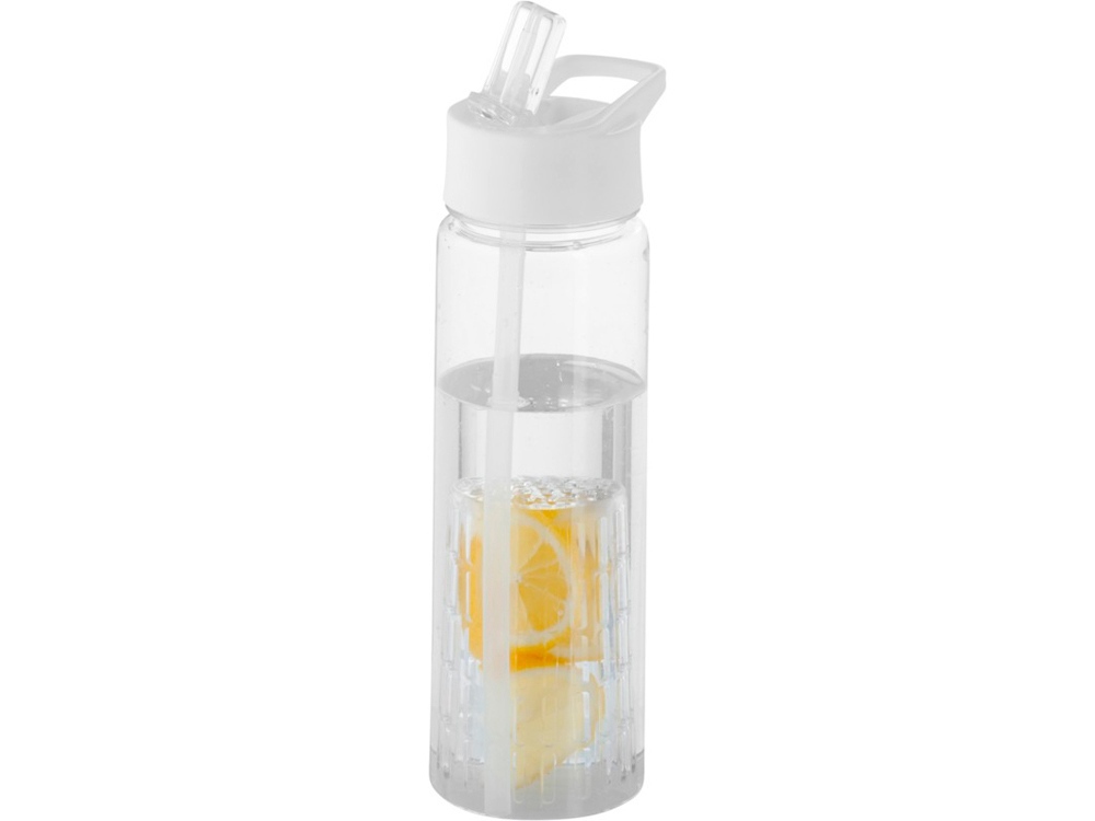 Оригинальная бутылка для воды. Благодаря отделению для фруктов есть возможность создания лимонада на свой вкус. Придется по вкусу любителям натуральных продуктов и здорового образа жизни. Легко разбирается. На пластиковый корпус возможно нанесение тампопечати. Объем – 740 мл.