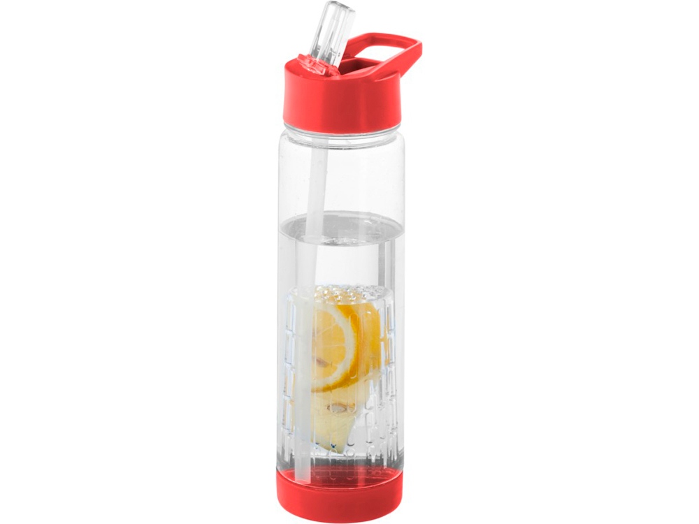 Оригинальная бутылка для воды. Благодаря отделению для фруктов есть возможность создания лимонада на свой вкус. Придется по вкусу любителям натуральных продуктов и здорового образа жизни. Легко разбирается. На пластиковый корпус возможно нанесение тампопечати. Объем – 740 мл.
