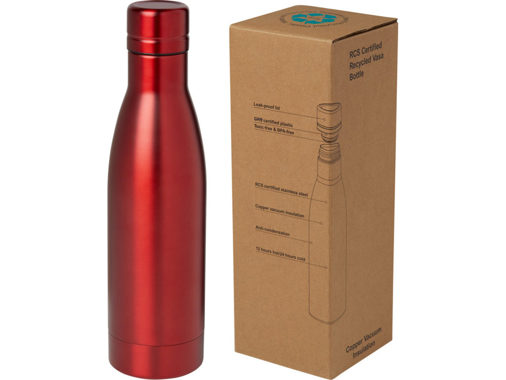 Ваши напитки останутся горячими в течение 12 часов и холодными в течение 24 часов в медной бутылке Vasa с вакуумной изоляцией. Бутылка с двойной стенкой и сделана из переработанной нержавеющей стали, сертифицированной по стандарту RCS, с вакуумной изоляцией и медным покрытием на внутренней стенке, что позволит вашему напитку оставаться абсолютно горячим или холодным словно лед, в зависимости от того, что вам нужно. Без содержания BPA, протестировано и одобрено согласно немецкому законодательству о безопасности пищевых продуктов (LFGB) и проверено на содержание фталатов согласно нормам REACH. Объем: 500 мл. Поставляется в подарочной коробке из экологичного и ответственного материала. 87% Recycled stainless steel, 13% Пластик PP. #?0:>2:0: FSC Mix Credit P5.1 CU-COC-877277.