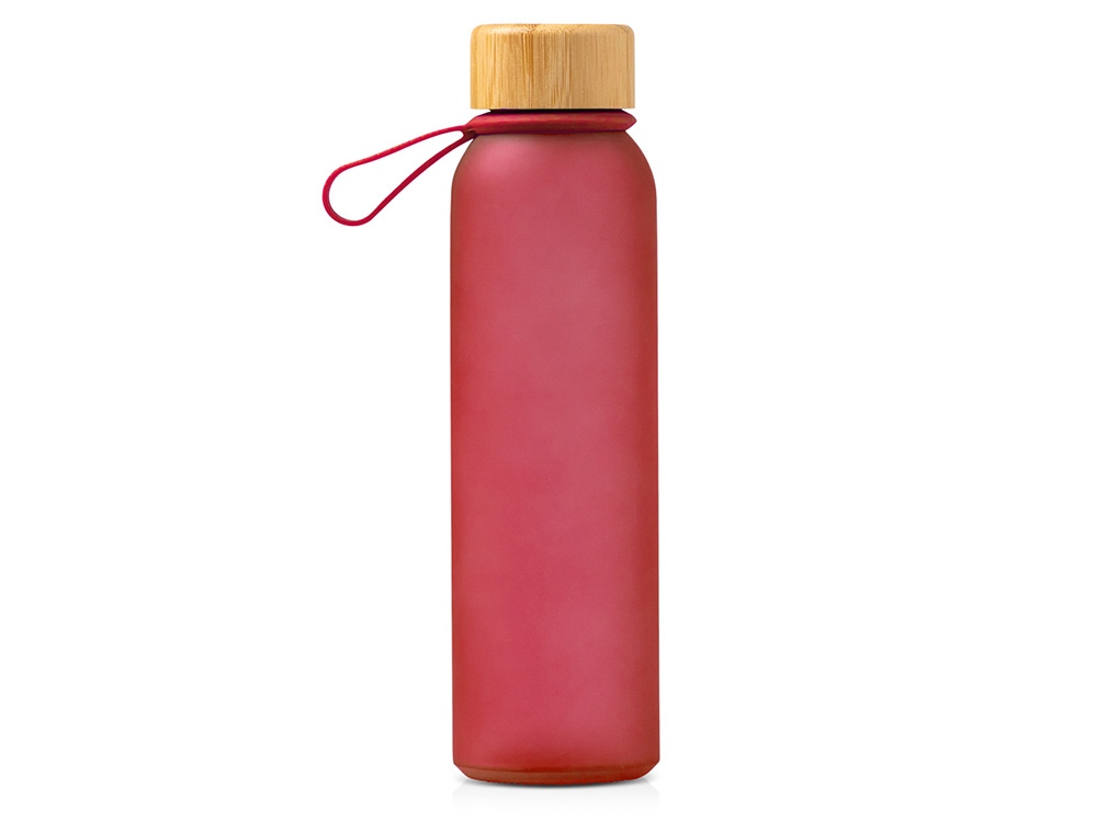 Полупрозрачная бутылка из переработанного стекла. Бамбуковая крышка с держателем. Объём: 500 мл. Поставляется в индивидуальной коробке.