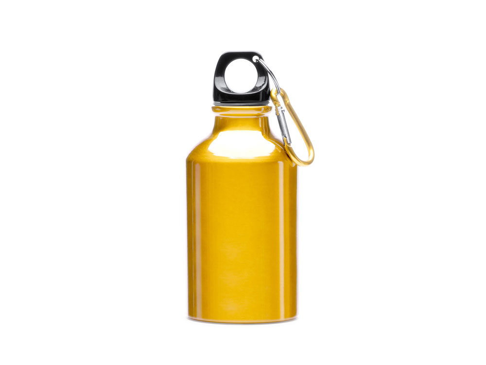Алюминиевая бутылка с карабином. Черная крышка и карабин в тон бутылки. Емкость 330 мл. Поставляется в дизайнерской упаковке.