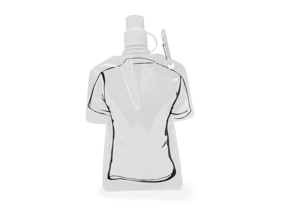 Гибкая емкость для питья в форме футболки, с защитным колпачком и карабином для удобства транспортировки. Объем 470 мл.