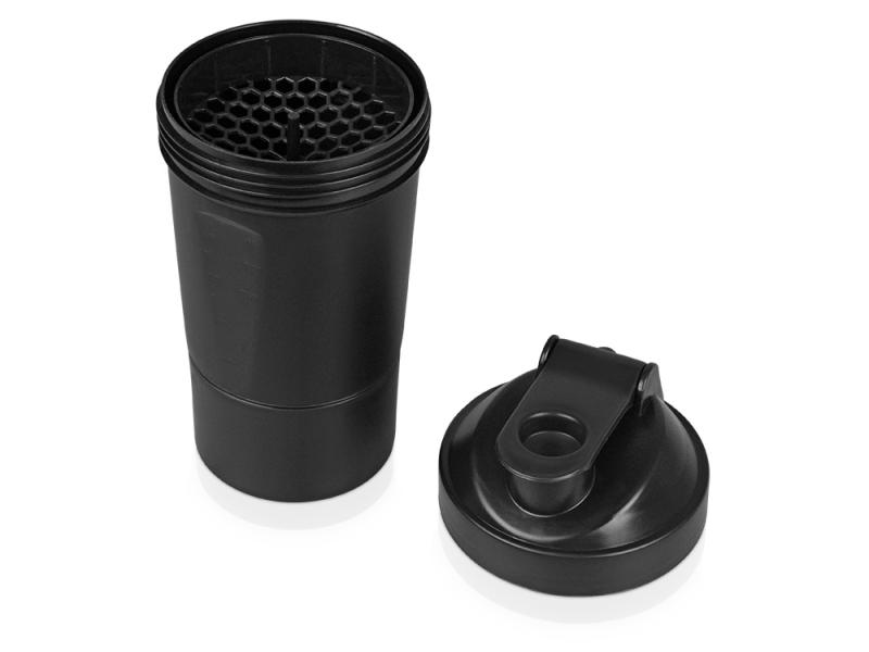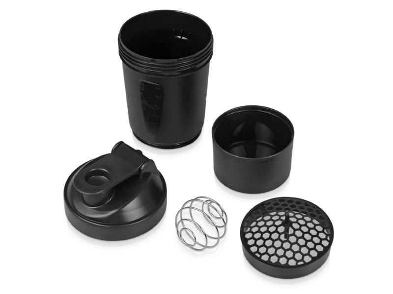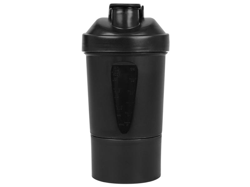 Шейкер для спортивного питания - это один из необходимых аксессуаров для спортсменов и людей, ведущих активный образ жизни. В нем можно приготовить протеиновый коктейль или фруктовый напиток. Шейкер классической формы, он удобно лежит в руке, к донышку прикручивается емкость для смешивания (таблетница), в которой можно хранить спортивные добавки: протеиновый порошок, витамины и другие концентраты. Внутри колбы имеется пластиковая сетка, чтобы процеживать спортивный напиток, а также металлический размешиватель, который растворяет порошок в напитке без комочков. Объем - 400мл. Шейкер изготовлен из пищевого пластика, он герметичен и легко моется.