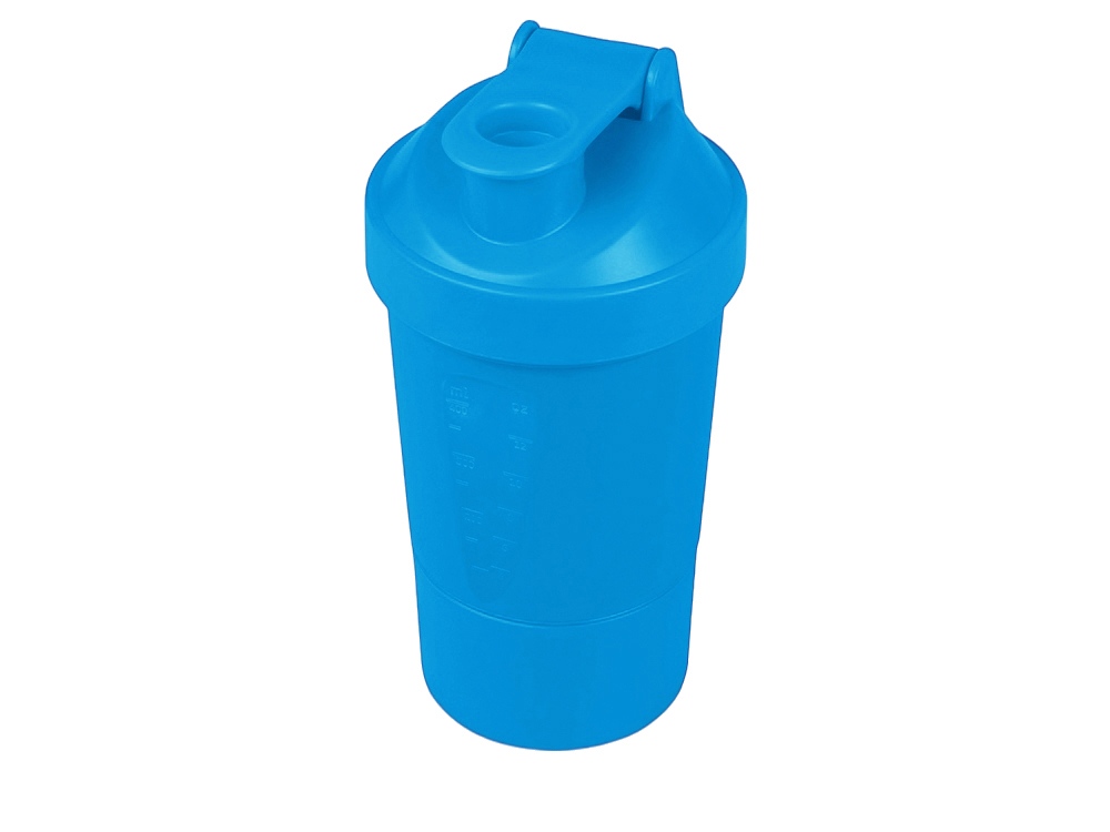 Шейкер для спортивного питания - это один из необходимых аксессуаров для спортсменов и людей, ведущих активный образ жизни. В нем можно приготовить протеиновый коктейль или фруктовый напиток. Шейкер классической формы, он удобно лежит в руке, к донышку прикручивается емкость для смешивания (таблетница), в которой можно хранить спортивные добавки: протеиновый порошок, витамины и другие концентраты. Внутри колбы имеется пластиковая сетка, чтобы процеживать спортивный напиток, а также металлический размешиватель, который растворяет порошок в напитке без комочков. Объем - 400мл. Шейкер изготовлен из пищевого пластика, он герметичен и легко моется.