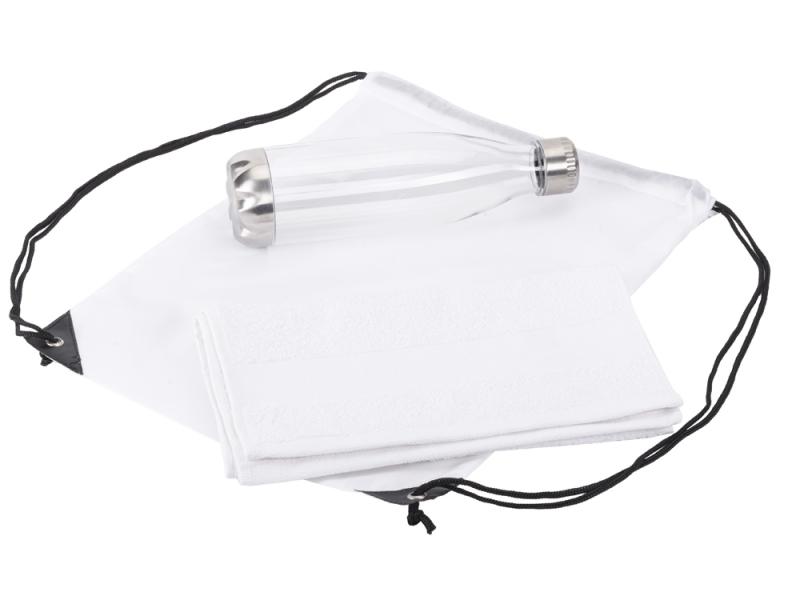 Универсальный спортивный набор будет актуален в любом виде спорта. Бутылка для воды позволит брать с собой не только воду, но и тонизирующие напитки или коктейли и поможет освежиться в любой момент. Тритан, из которого изготовлена бутылка, не искажает вкус и запах напитков, являясь абсолютно безопасным для человека.