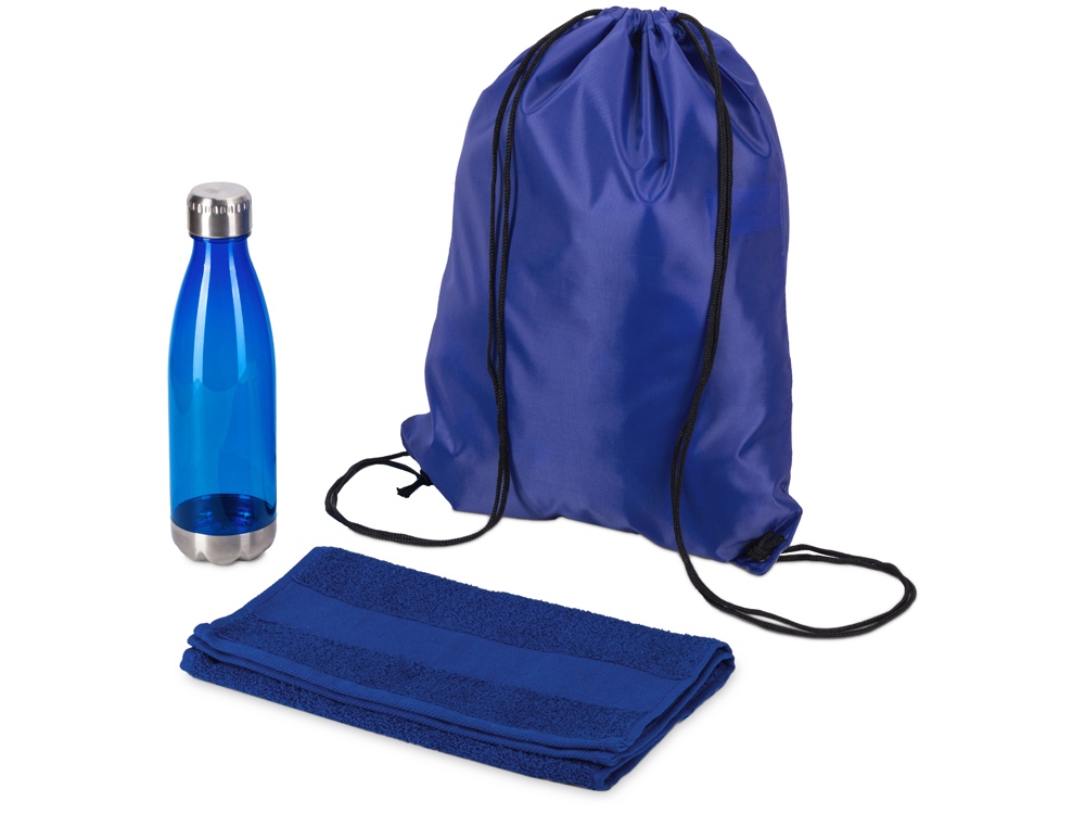 Универсальный спортивный набор будет актуален в любом виде спорта. Бутылка для воды позволит брать с собой не только воду, но и тонизирующие напитки или коктейли и поможет освежиться в любой момент. Тритан, из которого изготовлена бутылка, не искажает вкус и запах напитков, являясь абсолютно безопасным для человека.