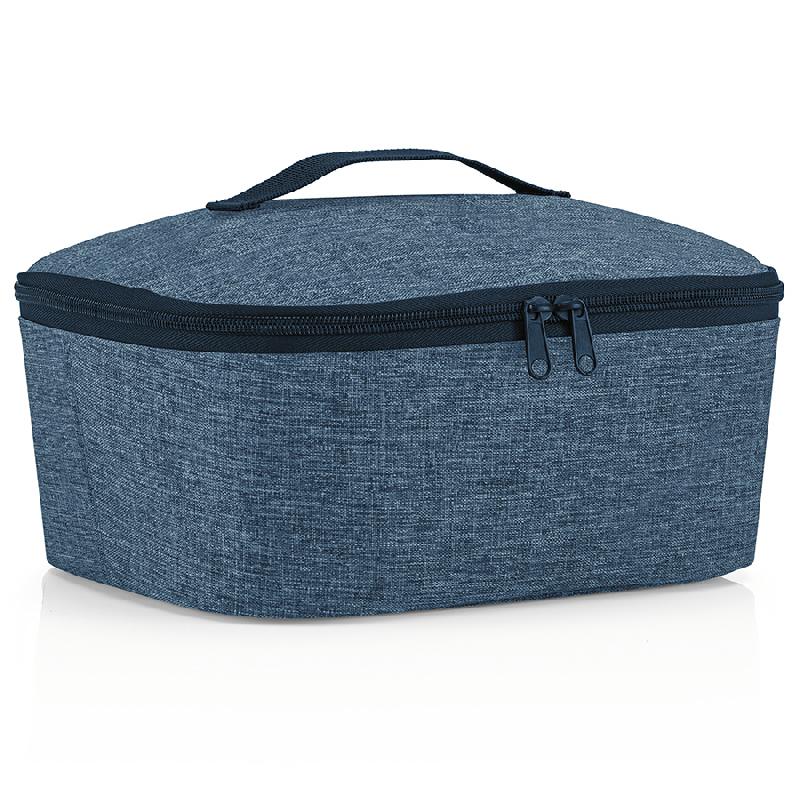 Внутри – термоизоляционный материал, который сохранит продукты в прохладе. Крышка закрывается очень плотно и застегивается на молнию. Тепловая изоляция выполнена из высококачественной алюминиевой фольги. Сумка оборудована удобной ручкой для переноски. Материал – прочный водоотталкивающий полиэстер. Объем – 4,5 л.