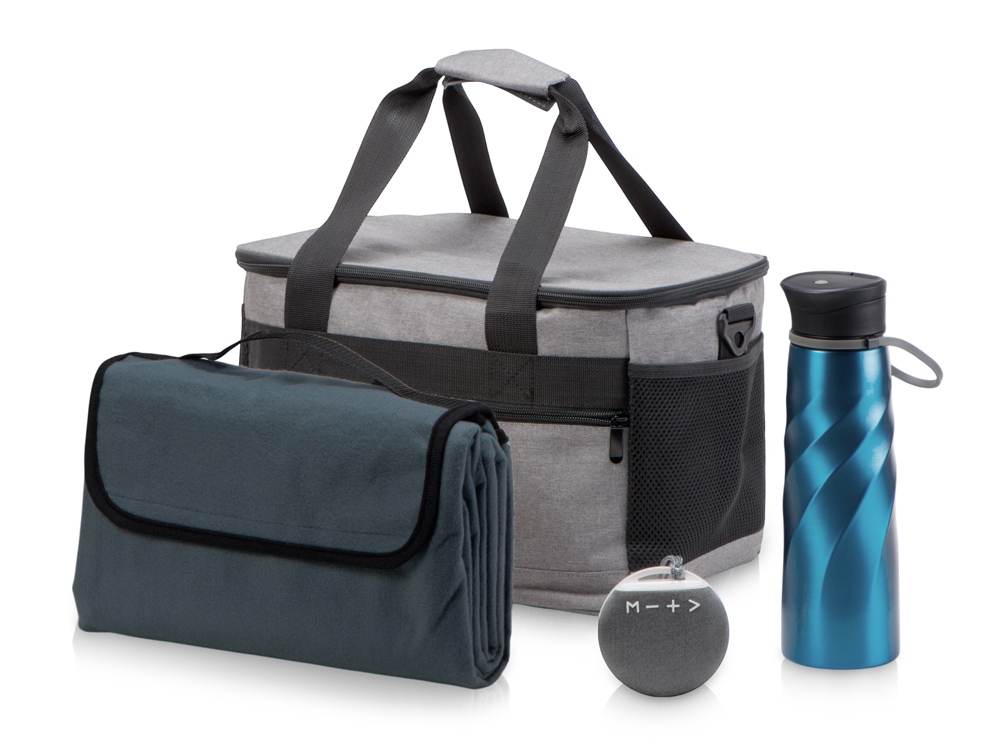 Вместительная сумка-холодильник имеет основное отделение и карман спереди на молнии. Специальная конструкция дна предотвращает протекание жидкости от размораживания. Съемный плечевой ремень регулируется по длине. В комплекте открывалка для бутылок.