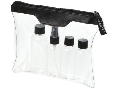 Одобренный дорожный набор бутылок для полетов Munich. Сумка для туалетных принадлежностей, которую можно брать в самолет. Включает 2 бутылки по 50 мл, 1 бутылку на 90 мл, 1 пульверизатор и воронку. Бутылки, пульверизатор и воронка упакованы в полиэтиленовый кулек отдельно от чехла. ПВХ.