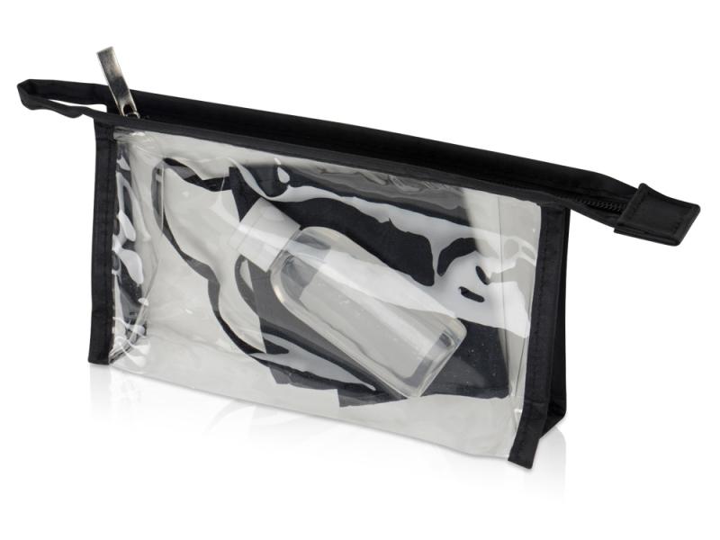 Самое необходимое всегда под рукой - в любом месте и при любой ситуации. Многоразовая хлопковая маска черного цвета и антисептик в стильной пластиковой косметичке поместятся в любой сумке.