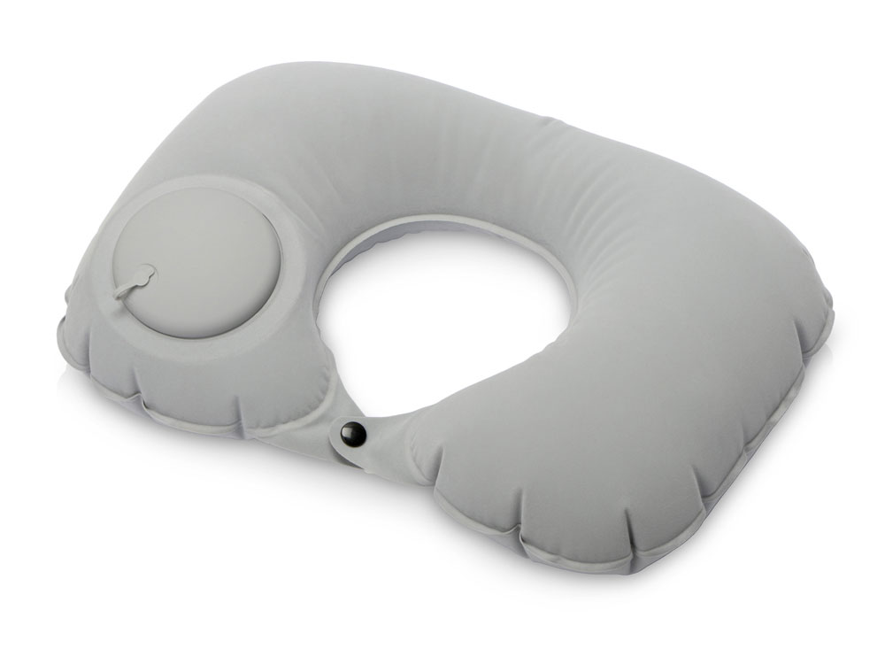 На обратной стороне от насоса-помпы находится клапан для сдувания воздуха из подушки. Двухуровневая фиксация кнопками позволит выбрать наиболее комфортное положение на шее. В комплекте идет чехол на завязках для хранения и удобной транспортировки.