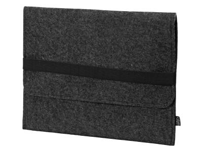 Чехол для ноутбука выполнен из фетра толщиной 3 мм. С передней стороны расположен органайзер размером 13x27 см для канцелярских принадлежностей, карт и телефона. Чехол фиксируется в закрытом виде с помощью эластичной ленты.
