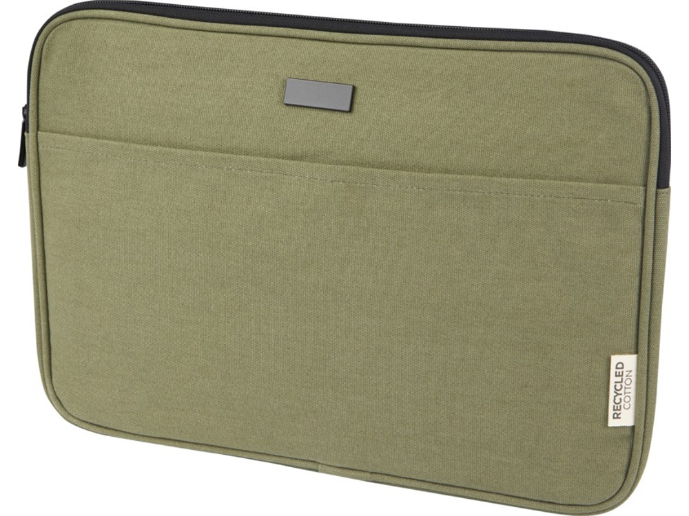 Изготовленный из высокопрочных экологичных материалов, брезента и подкладки из переработанного ПЭТ, соответствующих стандарту GRS, чехол для ноутбука диагональю 14 дюймов Joey имеет защищенное отделение для ноутбука и открытый передний карман с застежкой на липучке. Декоративная металлическая пластина может придать логотипу сияние благодаря утонченному матовому покрытию.