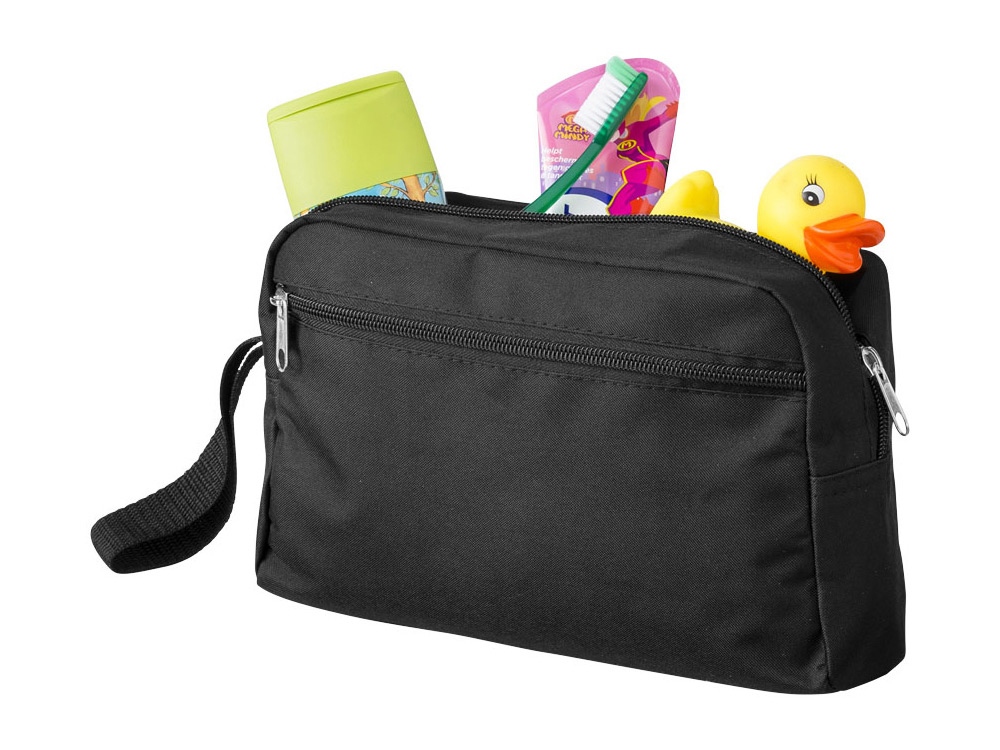 Вместительная косметичка с петлей, основным отделением на молнии и передним карманом на молнии из полиэстера.