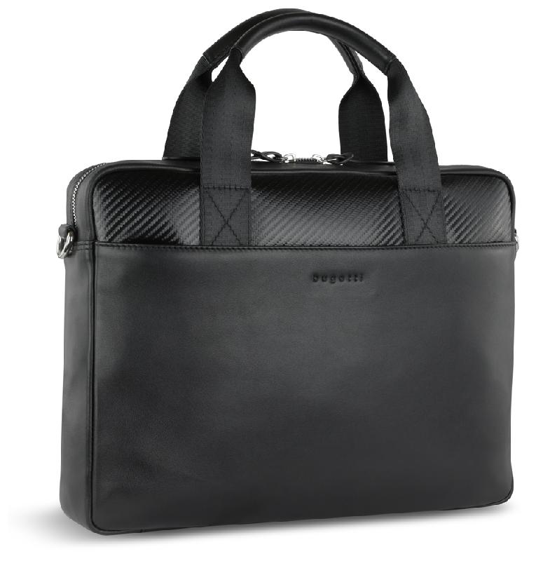 Портфель мужской BUGATTI Comet, чёрный, воловья кожа/полиэстер, 37х6х27 см