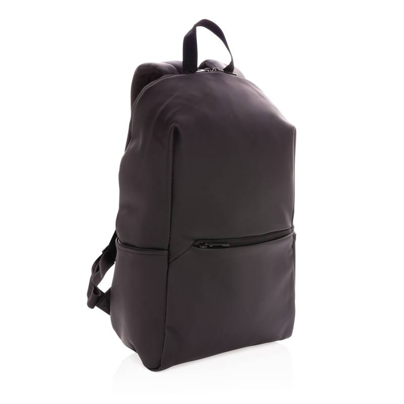 Минималистичный рюкзак из гладкого полиуретана с подкладкой и дополнительным карманом для ноутбука 15,6 дюймов. Также предусмотрены 2 внутренних кармана и 2 петли для ручек. Задняя стенка из сетчатого материала, регулируемые лямки. Снаружи — 100% полиуретан, внутри — полиэстер 210D. Без ПВХ.