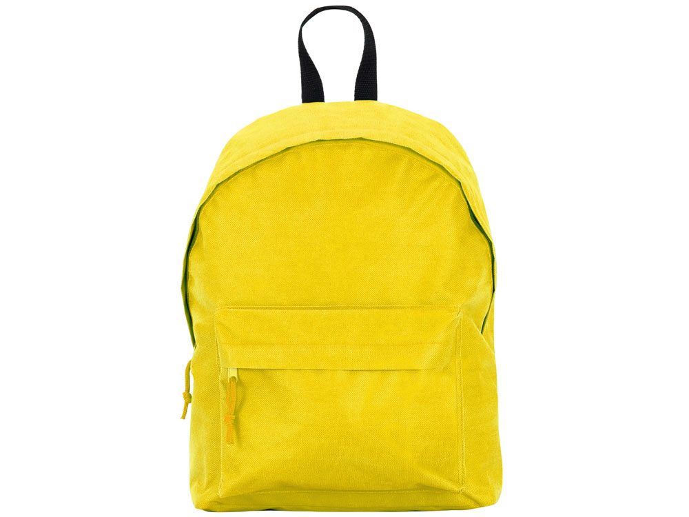 Базовый рюкзак из прочной ткани. Двойной плечевой ремень и контрастная ручка. Два кармана: основной и один спереди с молниями, клапанами и бегунками в тон