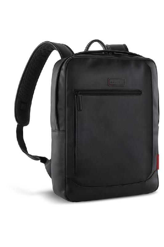 Рюкзак мужской BUGATTI Clark, чёрный, воловья кожа/полиэстер, 30х10х40 см, 12 л