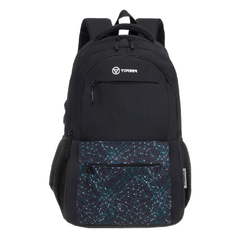 Рюкзак TORBER CLASS X, черный с орнаментом, 45 x 30 x 18 см + Мешок для сменной обуви в подарок!!