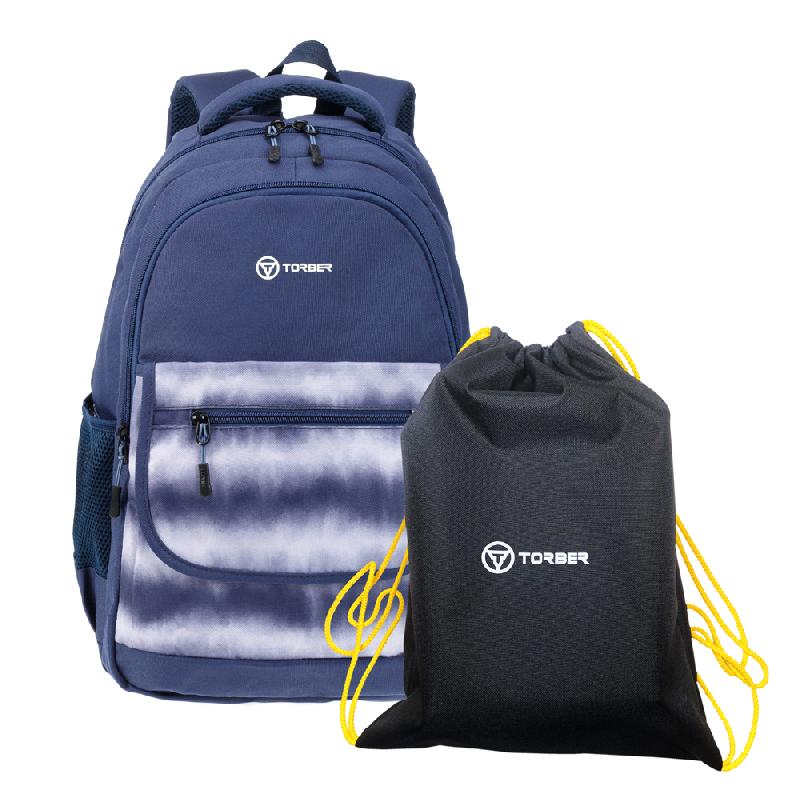 Рюкзак TORBER CLASS X, темно-синий с орнаментом, 45 x 30 x 18 см + Мешок для сменной обуви в подарок