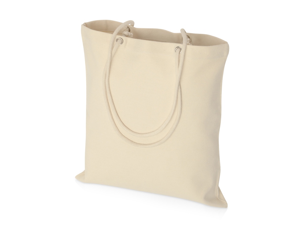 Легкую сумку удобно брать с собой за покупками или на пляж. Ручки из хлопкового шнура на люверсах обеспечивают повышенную прочность. Благодаря высокой плотности хлопка сумка прослужит долго.